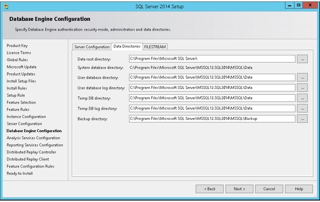 You can leave the default paths or select different drives per file types. You need to make sure you have enough space to hold your databases. Click Next