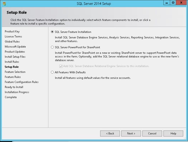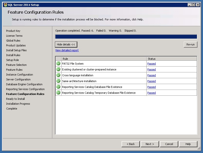 MS SQL server will check all the installation requirements to verify that your server is properly configured to run SQL server, you won’t be able to continue until all rules are marked as passed. If you get a warning like the one listed above, click on the link for more information. It is recommended to resolve all warnings before clicking the next button.