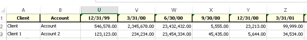 A client sent me an excel sheet with financial information classified in columns where each column header was a date and the values associated with that date were listed below