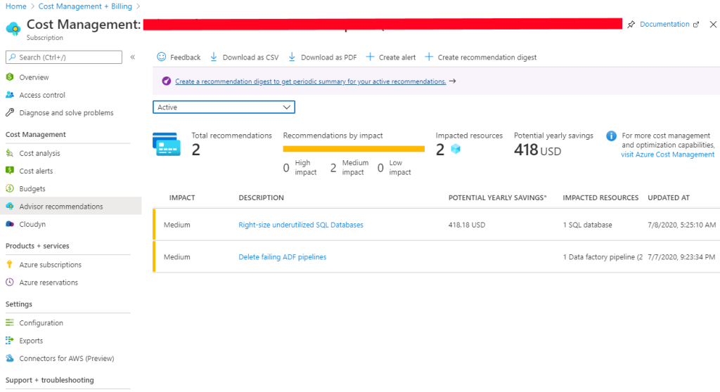 A common problem in azure is identifying resources that are no longer used, underutilized or not quite working. Azure Advisor tool is the best option to fine tune your Azure bill.