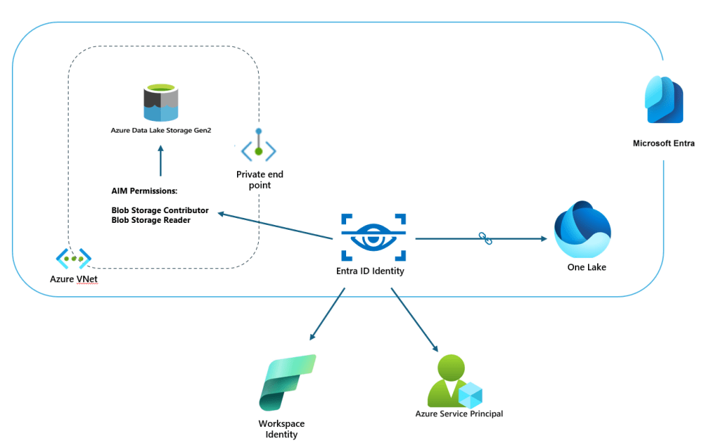 - Monitor usage and set up alerts for suspicious access patterns on the storage. Because the storage now trusts the Fabric workspace, any compromise of that workspace or the service principal could lead to data access – treat those identities with high privilege.